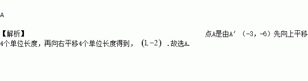 将点A先向下平移4个单位长度,再向左平移4个单位长度,得到点A′(-3,-6),则点A的坐标为 ( )