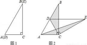 如图2,固定△ABC,使△DEC绕点C旋转,当点D恰好落在AB边上时,填空: