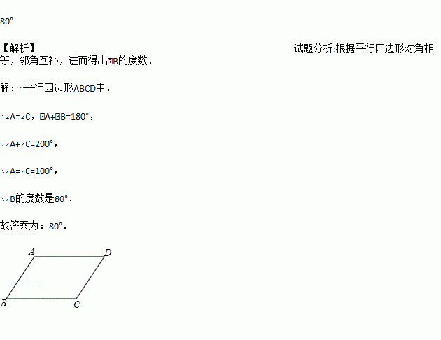 如图,直线AB,CD相交于点O,若∠AOC+∠BOD=100°,则∠AOD等于__________度.