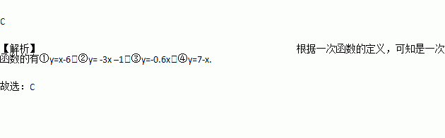 ①y=x-6;②y= -3x –1;③y=-0.6x;④y=7-x.