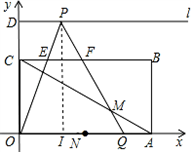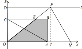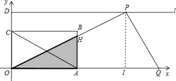 如图,矩形OABC中,A(6,0)、C(0,2)、D(0,3),射线l过点D且与x轴平行,点P、Q分别是l和x轴正半轴上动点,满足∠PQO=60°.