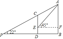 分析 如图作EF⊥AB于F,则四边形EFBD是矩形.设EF=AF=x,在Rt△PAB中,AB=x+3,PB=30+x,根据tan22°=$\frac{AB}{PB}$,可得$\frac{2}{5}$=$\frac{x+3}{30+x}$,解方程即可解决问题.