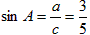 在Rt△ABC中,∠C=90°,a=3,c=5,求sinA和tanA的值。