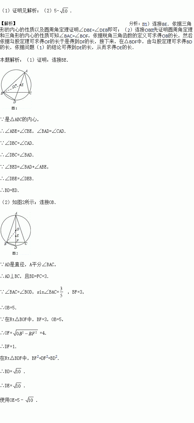 已知⊙O为△ABC的外接圆,点E是△ABC的内心,AE的延长线交BC于点F,交⊙O于点D