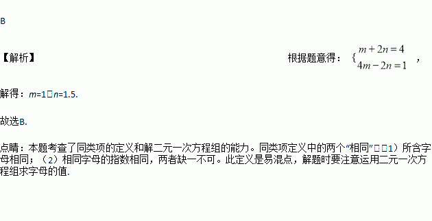 是同类项,则m、n的值为( )