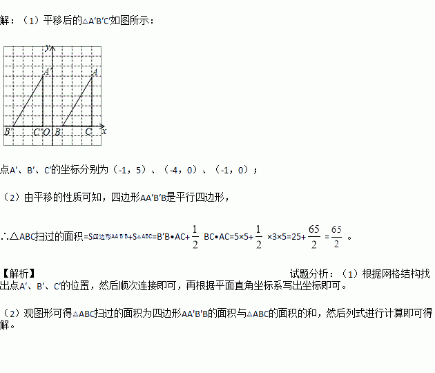 (2)求出在整个平移过程中,△ABC扫过的面积.