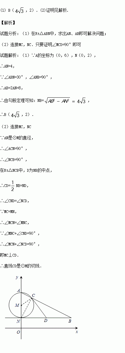 (1)若点A(0,6),N(0,2),∠ABN=30°,求点B的坐标;