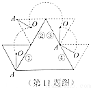 是小三角形的内心,现将小三角形沿着大三角形的边缘顺时针滚动,当由①位置滚动到④位置时,线段
