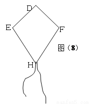 小明制作的风筝形状如图(8)所示,他根据DE=DF,EH=FH,不用测量就知道∠E=∠F,请你运用所学知识给予证明。![]()