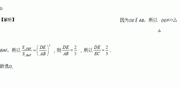 如图,在□ABCD中,E为CD上一点,连接AE、BD,且AE、BD交于点F,S△DEF:S△ABF=4:25,则DE:EC=( )