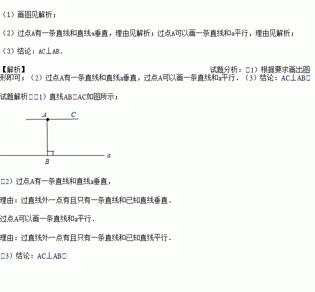 (1)完成下列画图:过点A画AB⊥a,垂足为点B,画AC∥a;