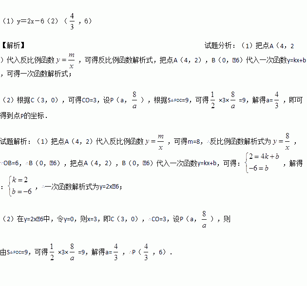 的图象在第一象限交于点A(4,2),与y轴的负半轴交于点B,且OB=6.