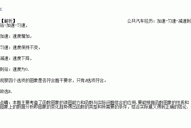 一辆公共汽车从车站开出,加速行驶一段后开始匀速行驶.过了一段时间,汽车到达下一个车站.乘客上下车后汽车开始加速,一段时间后又开始匀速行驶.下面的四幅图中,可以近似地刻画出汽车在这段时间内的速度变化情况的是( )