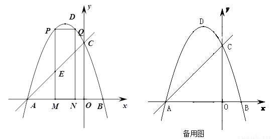 (2)点M为线段AB上一点(点M不与点A、B重合),过点M作x轴的垂线,与直线AC交于点E,与抛物线交于点P,过点P作PQ∥AB交抛物线于点Q,过点Q作QN⊥x轴于点N,若点P在点Q左边,当矩形PMNQ的周长最大时,求△AEM的面积;