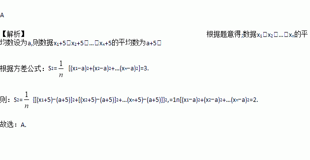 如果一组数据x1,x2,…,xn的方差是2,则另一组数据x1+5,x2+5,…,xn+5的方差是( )