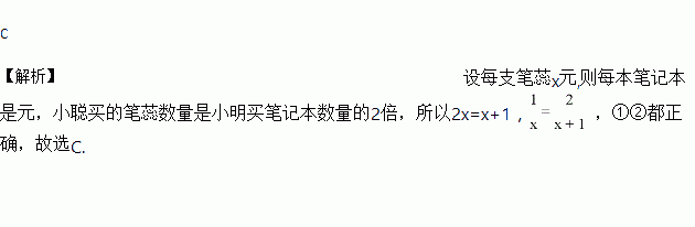 用相同的钱,小聪买的笔蕊数量是小明买笔记本数量的2倍,每本笔记本比每支笔蕊多1元.设每支笔蕊