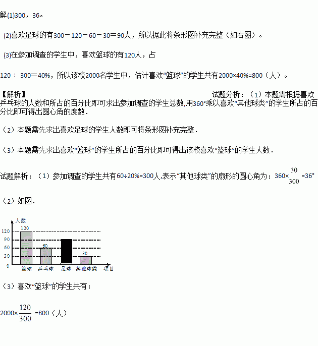 (3)若该校有2000名学生,则估计喜欢“篮球”的学生共有 人.
