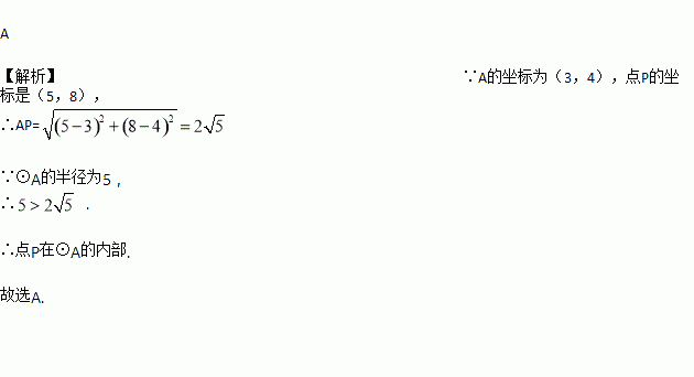 若⊙A的半径是5,圆心A的坐标为(3,4),点P的坐标为(5,8),则点P的位置在( )