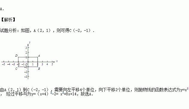 矩形ABCD的两条对称轴为坐标轴,点A的坐标为(2,1).一张透明纸上画有一个点和一条抛物线,平移透明纸,使这个点与点A重合,此时抛物线的函数表达式为