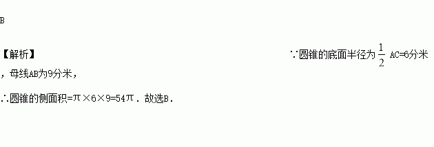 各点所在圆的直径AC长为12分米,伞骨AB长为9分米,那么制作这样的一把雨伞至少需要绸布面料为