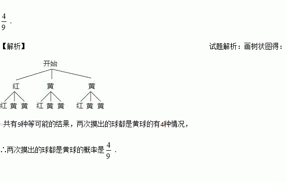 一个布袋内只装有一个红球和2个黄球,这些球除颜色外其余都相同,随机摸出一个球后放回搅匀,再随机摸出一个球,则两次摸出的球都是黄球的概率是_____.
