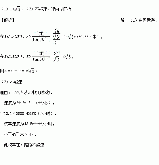 £¨2£©ÒÑÖª±¾Â·¶Î¶ÔУ³µÏÞËÙΪ45ǧÃ×/Сʱ£¬Èô²âµÃijÁ¾Ð£³µ´ÓAµ½BÓÃʱ2Ã룬ÕâÁ¾Ð£³µÊÇ·ñ³¬ËÙ£¿ËµÃ÷ÀíÓÉ£®£¨²Î¿¼Êý¾Ý£º