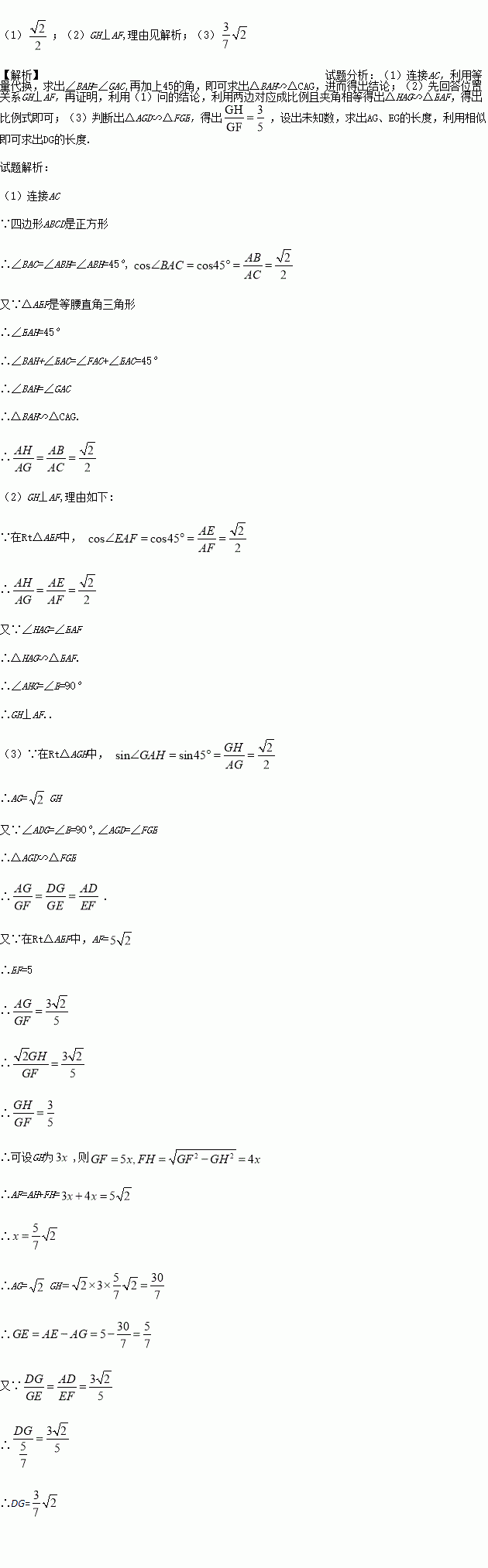 (2)连接GH,判断GH与AF的位置关系,并证明;