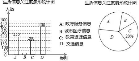 (2)关注城市医疗信息的有 人,并补全条形统计图;