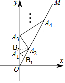 解答 解:过A1作A1B1⊥OM于点B1,过A2作A2B2⊥y轴于点B2,如图所示.![]()