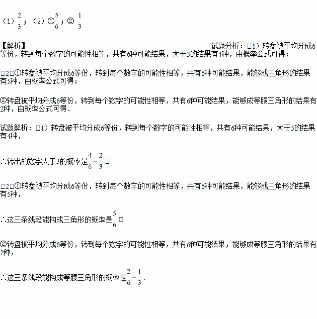 (1)转动转盘,转出的数字大于3的概率是多少;