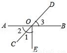 如图,直线AB,CD交于O,EO⊥AB于O,∠1与∠3的关系是( )