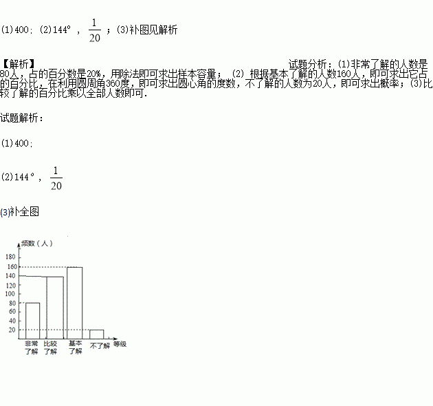 今年是襄阳“创建文明城市”工作的第二年,为了更好地做好“创建文明城市”工作,市教育局相关部门对某中学学生“创文”的知晓率,采取随机抽样的方法进行问卷调查,调查结果分为“非常了解”, “比校了解”, “基本了解”,和“不了解”四个等级.小辉根据调查结果绘制了如图所示的统计图,请根据提供的信息回答问题: