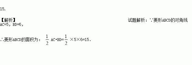 菱形ABCD中,对角线AC=5,BD=6,则菱形ABCD的面积为_____________.