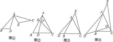 拓展应用:如图④,在等腰三角形中,AB=AC,点O是AB边的垂直平分线与AC的交点,点D、E分别在OB、BA的延长线上.若BD=AE,∠BAC=50°,∠AEC=32°,求∠BAD的度数.