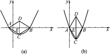 在平面直角坐标系中,已知二次函数的图象与x轴相交于点A,B,顶点为C,点D在这个二次函数图象的对称轴上.若四边形ACBD是一个边长为2且有一个内角为60°的菱形.求此二次函数的表达式.