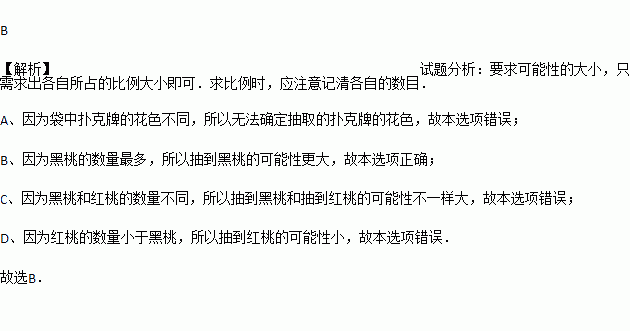 C. 抽到黑桃和抽到红桃的可能性一样大 D. 抽到红桃的可能性更大