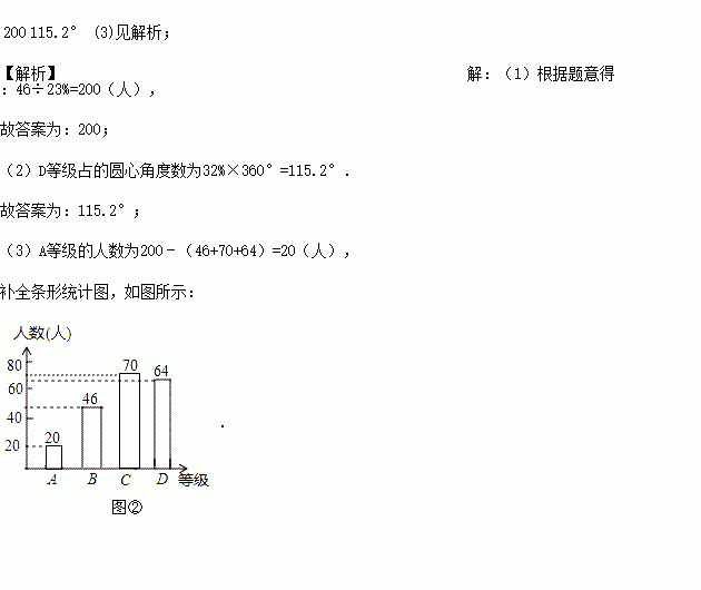 (2)图①中,D等级所占圆心角的度数为_____;