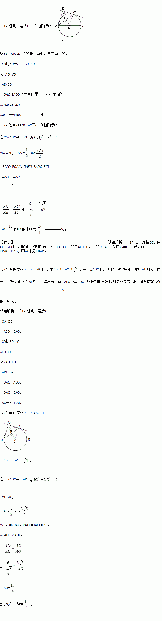 (1)求证:AC平分∠BAD;