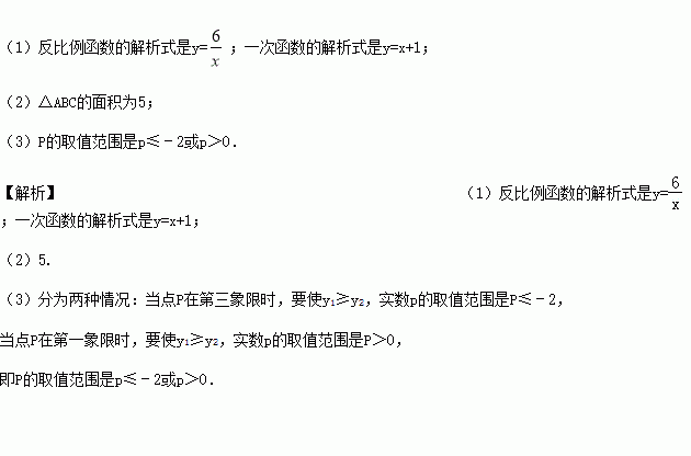 ⑶若P(p,y1),Q(﹣2,y2)是函数y=