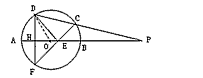 (2)解:∵直径AB⊥DF,∴DH=FH ∴ED=EF∴EH平分∠DEF,∵DE⊥CF,∴∠DEC=∠DEF=90°,∴∠FEH=45°,∠CEP=45°,∵∠DCE=∠P+∠CEP=15°+45°=60°,∴∠DOH=60° 在RtΔDOH中,由sin60°= ∴DH=∴DF= ∵ ∴ ∴ 在RtΔDCF中,由 ∴ ∴。