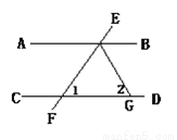 如图,AB∥CD,直线EF分别交AB、CD于E、F,EG平分∠BEF,若∠1=72°,则∠2=_________。