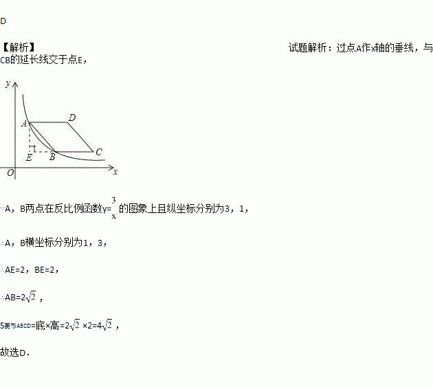 的图象经过A、B两点,则菱形ABCD的面积为( )