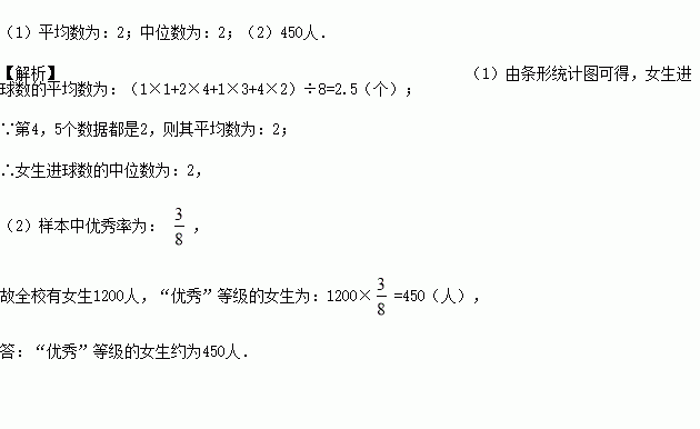 (2)投球4次,进球3个以上(含3个)为优秀,全校有女生1200人,估计为“优秀”等级的女生约为多少人?