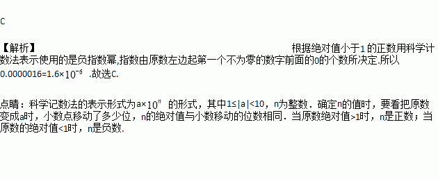 A. 16×10﹣7 B. 1.6×10﹣5 C. 1.6×10﹣6 D. 0.16×10﹣5
