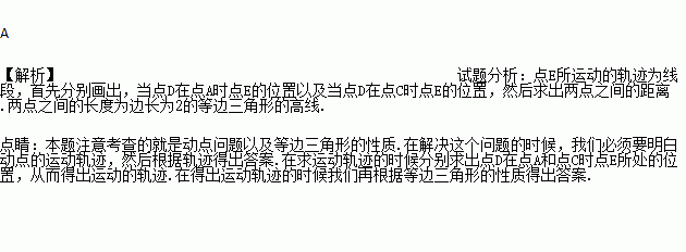 ,动点D在边AC上,以BD为边作等边△BDE(点E、A在BD的同侧),在点D从点A移动至点C的过程中,点E移动的路线为( )