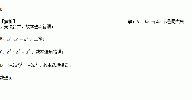 A. 2x+3y=5xy B. x·x4=x4 C. x8÷x2=x4 D. (x2y)3=x6y3
