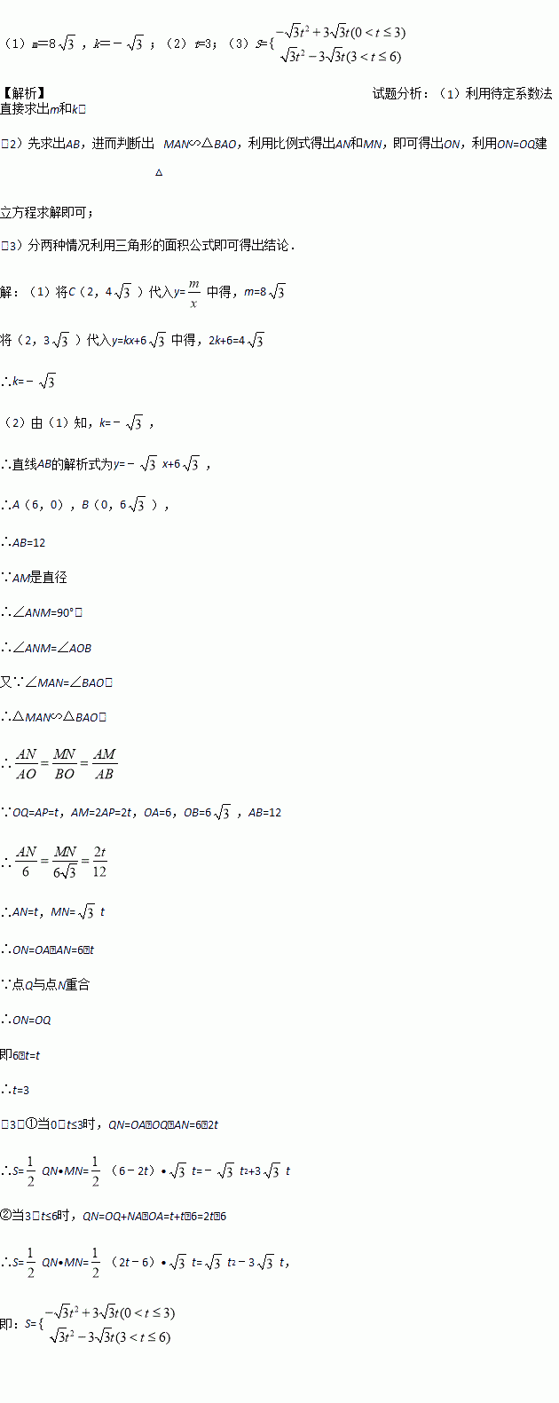 (3)若△MNQ的面积为S,试求S与t的函数关系式.