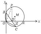(3)根据相似三角形OBD和ECD求出OD的长,那么S△ABD=S△POD,可据此求出三角形POD中OD边上的高,然后同⊙M中点到x轴的最大距离进行比较即可得出P是否在圆上.