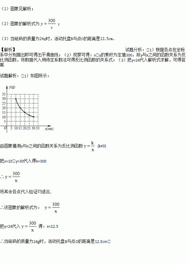 (3)当砝码的质量为24g时,活动托盘B与点O的距离是多少?