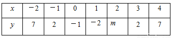 在二次函数y=x2+bx+c中,函数y与自变量x的部分对应值如下表,则表中m的值为__________.